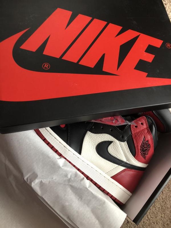 Arriving in stores in February 2018, the Air Jordan 1 Retro High OG 'Bred Toe' is a new spin on a classic design. The Chicago Bulls-inspired colorway combines elements of the 'Bred' and 'Black Toe' editions of the Air Jordan 1, executed on a premium leather build. The high-top features a black Swoosh on the white quarter panel, along with contrasting pops of red on the toe box, heel, collar, and outsole. The shoe stays true to its OG 1985 roots with Nike Air branding on the tongue tag and sockliner.