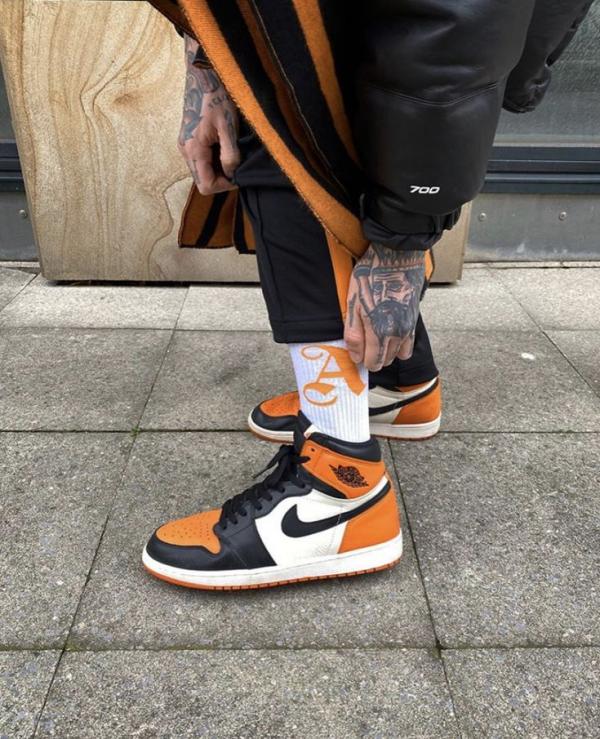 The 2025 edition of the Air Jordan 1 Retro High OG 'Shattered Backboard' revives the popular 2015 colorway, inspired by the jersey that Michael Jordan wore during an exhibition game in Italy following his rookie NBA season. (He shattered the backboard while executing a one-handed dunk.) The high-top sports a leather upper that combines white quarter panels with a black forefoot overlay and matching black Swoosh while orange accents land on the toe box, heel, and collar flap