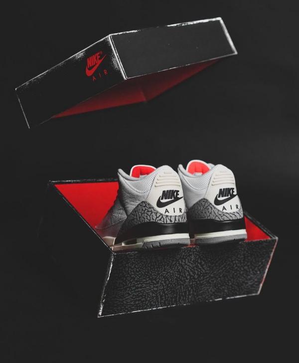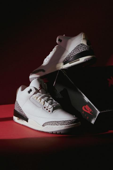 The Air Jordan 3 Retro 'White Cement Reimagined' brings back one of the original colorways, celebrating the 35th anniversary of the AJ3. Designed by Tinker Hatfield, the Reimagined iteration is built to the original 1988 specs. Returning true to form, the white leather upper pairs with elephant print overlays on the heel and toe while hits of Varsity Red appear on the lace loops and the Jumpman logo on the tongue. Nike Air is emblazoned on the back heel tab, while a visible Air unit provides lightweight cushioning. A slight hint of yellowing appears on the back heel and midsole, giving the shoe a vintage look