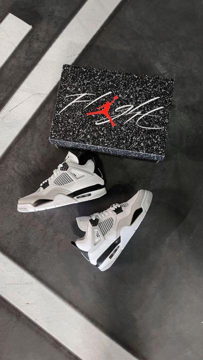 The Air Jordan 4 Retro 'Military Black' showcases the same color blocking and materials featured on the OG 'Military Blue' colorway from 1989. Smooth white leather is utilized on the upper, bolstered with a forefoot overlay in grey suede. Contrasting black accents make their way to the TPU eyelets, molded heel tab, and the Jumpman logo displayed on the woven tongue tag. Lightweight cushioning comes courtesy of a two-tone polyurethane midsole, enhanced with a visible Air-sole unit under the heel