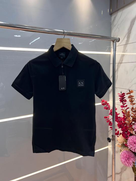Arman i Exchange Black Premium Imported 240 GSM Interlock Cotton Lycra Fabric Polo T Shirt with Patch Logo 716