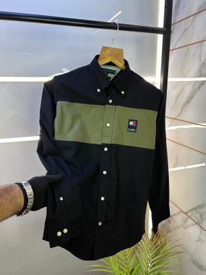 Tommy_Hilfiger Black Oxford Lycra Premium Printed Shirts F2613-BL