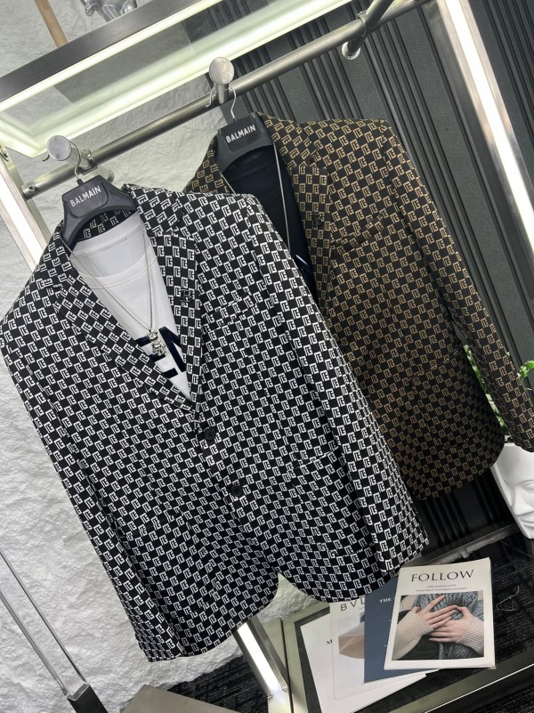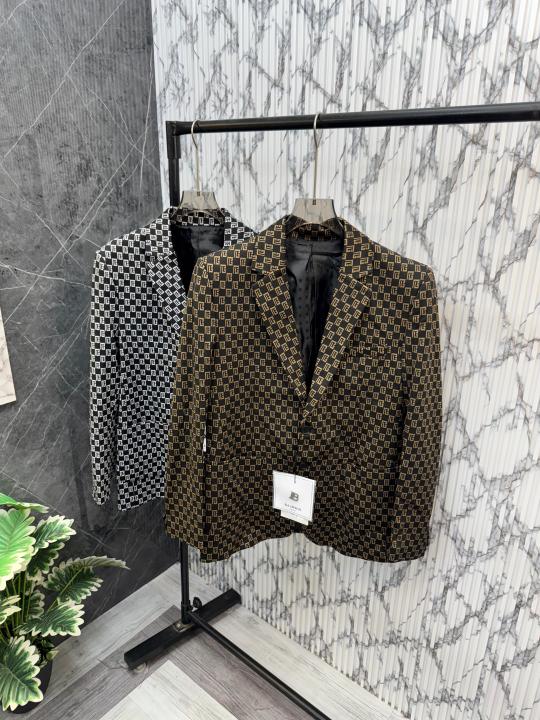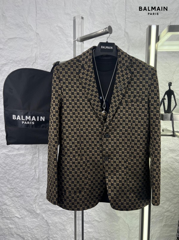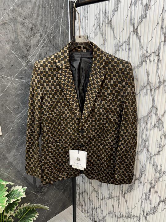 BALMAIN.PARIS.100%.IMPORTED.ALL.OVER.MONOGRAM.PRINTED.FABRIC.INCLUDES.PREMIUM.BRAND.METAL.BROOCH.&.PREMIUM.BLAZER.PACKAGING.CS201