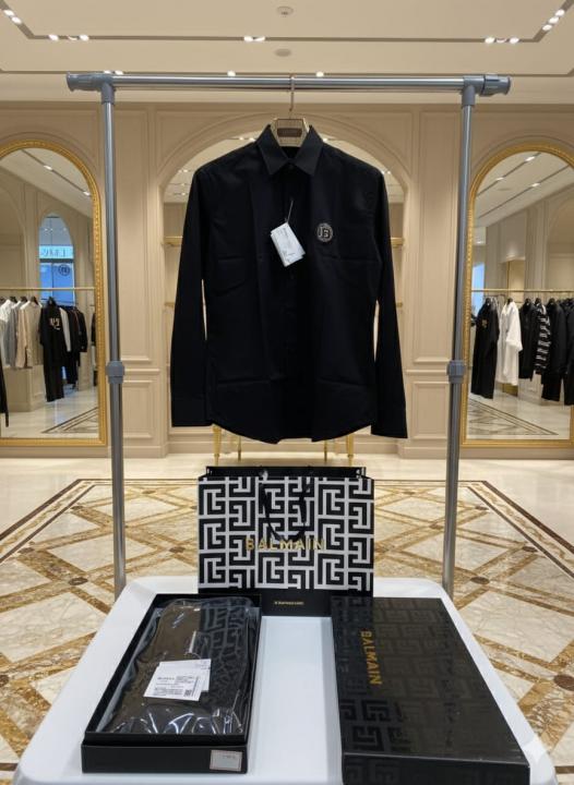 Balmain_Paris_Black_Steel_Logo_Designer_Shirt_With_Box_Packing_And_Carry_Bag_(1914)