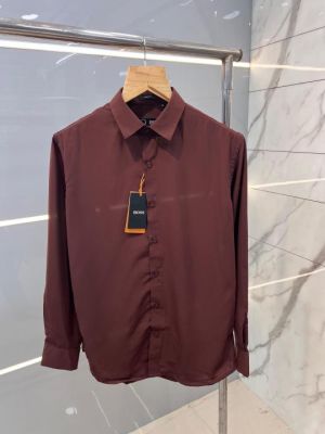 Hugo Bos s Cherry Red Premium 4way Stretchable Japanes Lycra Fabric Wrinkle Free Shirt with Brand Box 2447