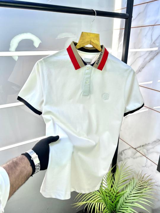 Burberr y White Polo Premium Collar Neck T-shirt F2759-WH