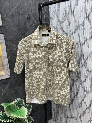 Sale.Fendi.100%.Brown.Imported.All.Over.Monogram.Printed.Denim.Fabric.Very.Premium.Drop.Shoulder.Half.Sleeves.Shirt.