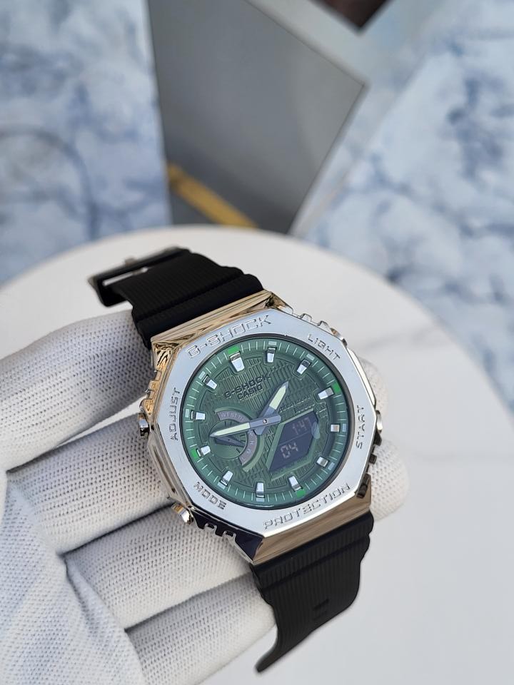 CASIO G-SHOCK 2100 METAL SILVER GREEN DIAL 196