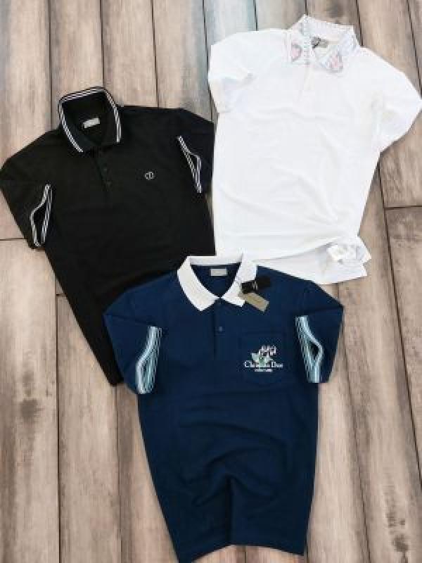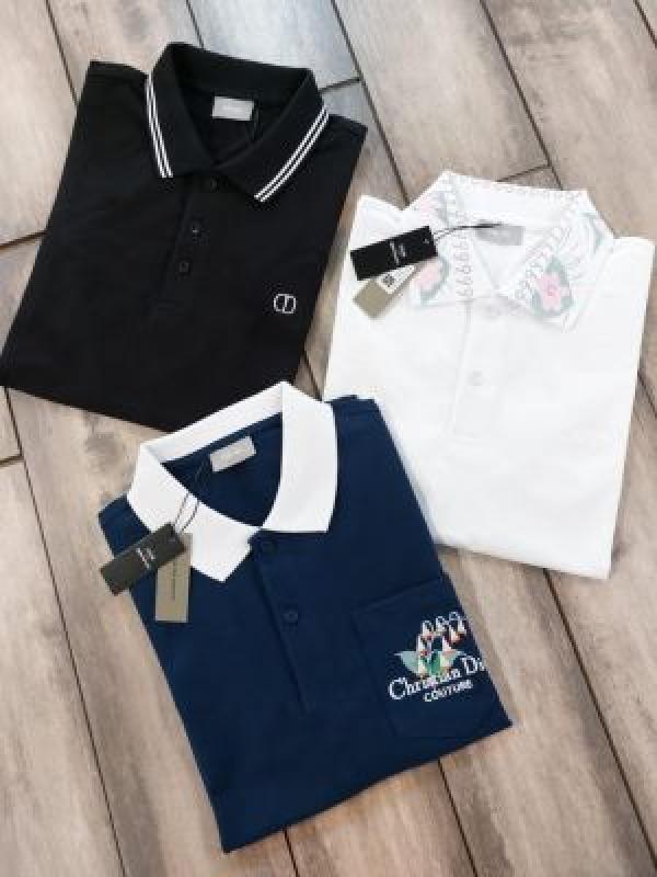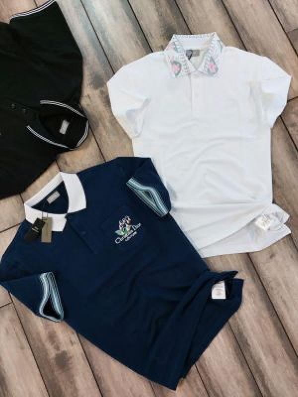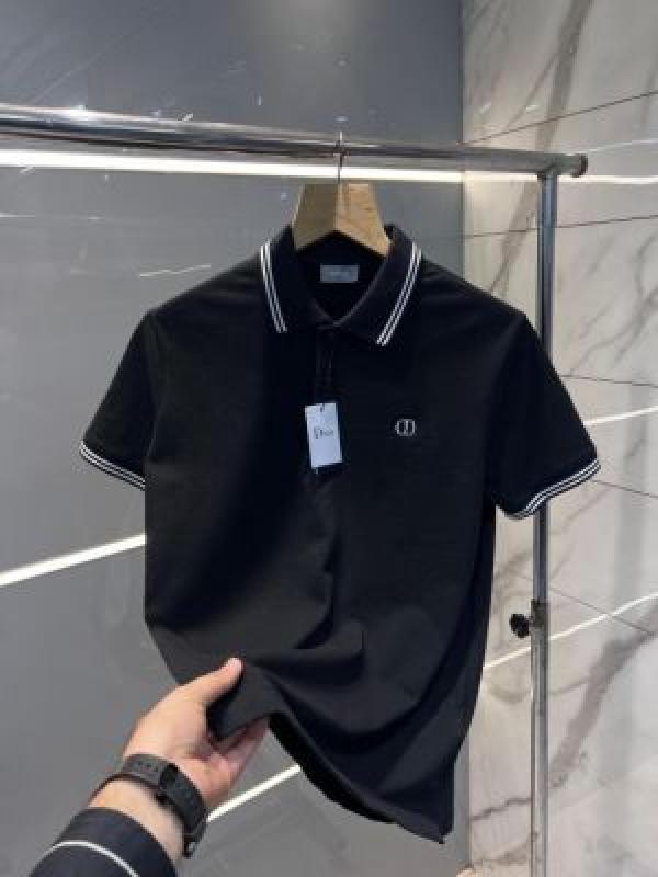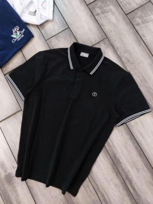 Christian Dio r Black Premium Cotton Lycra Pique fabric Polo Tshirt with Collar Design and Embroidered Logo 2885