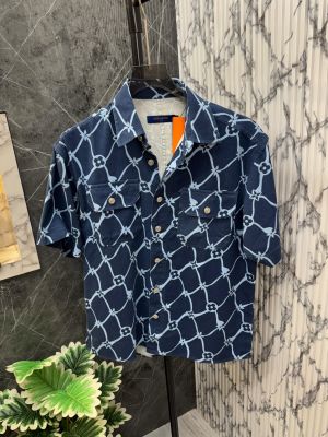 Sale.Louis.Vuitton.100%.Imported.All.Over.Monogram.Printed.Denim.Fabric.Very.Premium.Drop.Shoulder.Half.Sleeves.Shirt.