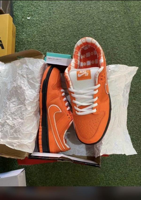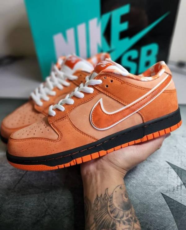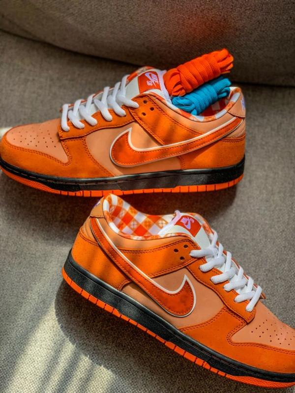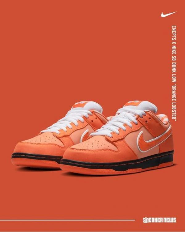 The Concepts x Nike Dunk Low SB 'Orange Lobster' continues a collaborative series that originally kicked off in 2008. In crafting the shoe's design, the Boston-based shop looks to the rare orange lobster for inspiration. Varying shades of orange are applied to the nubuck upper, featuring lightly speckled overlays and a tonal Swoosh outlined in white. A woven Nike SB tag embellishes the white mesh tongue, while a bib-themed pattern decorates the interior lining. The sneaker sits atop a traditional cupsole, featuring black sidewalls and a grippy orange rubber outsole