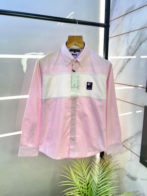 Sale Tommy_Hilfiger Pink Oxford Lycra Premium Printed Shirts F2613-PI