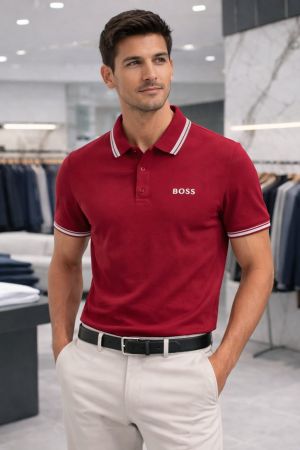 Hugo Bos s Maroon Premium 240 gsm interlock compact cotton fabric Polo Tshirt with Collar Design and Emboss Logo 3363