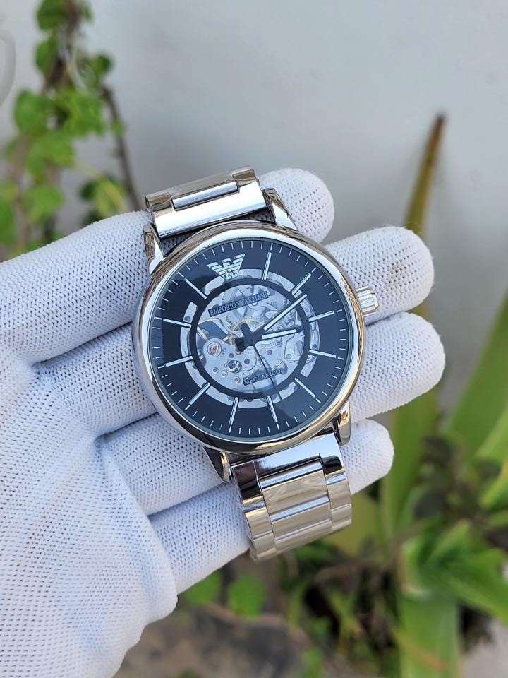 EMPORIO ARMANI MECCANICO AUTOMATIC SILVER BLACK DIAL