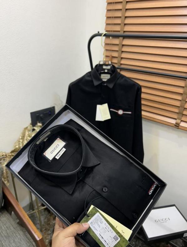 Gucc_i GG Pocket Embroidered Imported Premium Partywear Shirt With Og Box & Bag (DN 543)