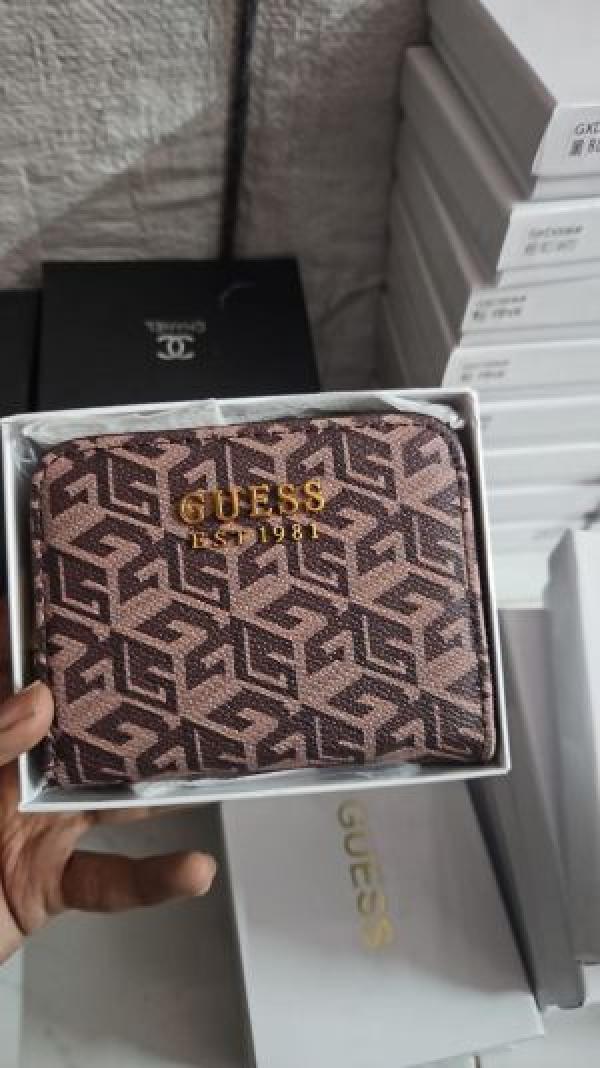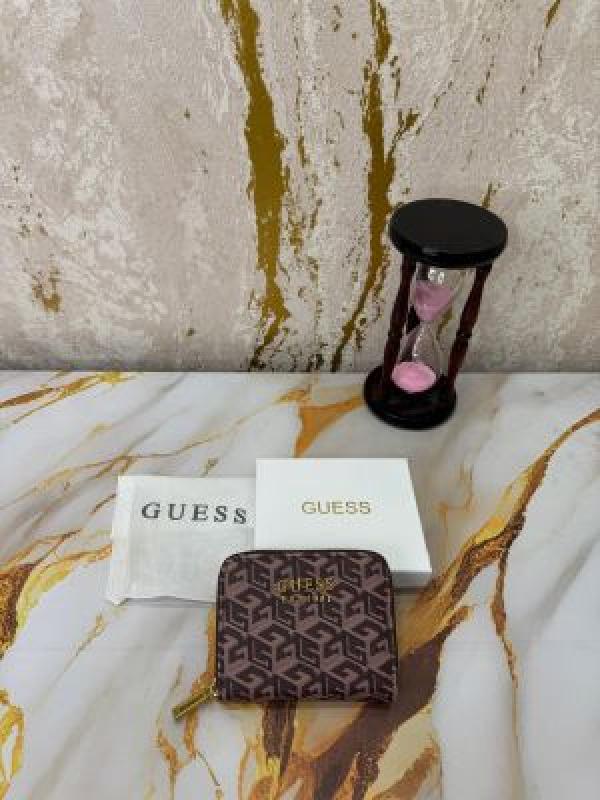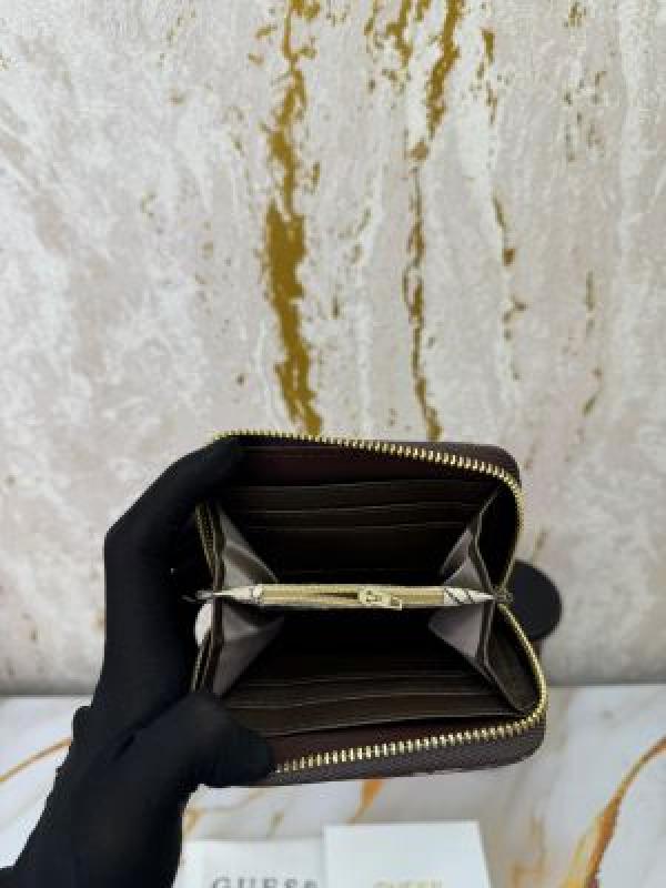 GUESS TEXTURED ZIPPY WALLET WITH OG BOX AND DUST BAG GXD005 COFFEE