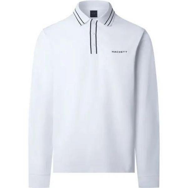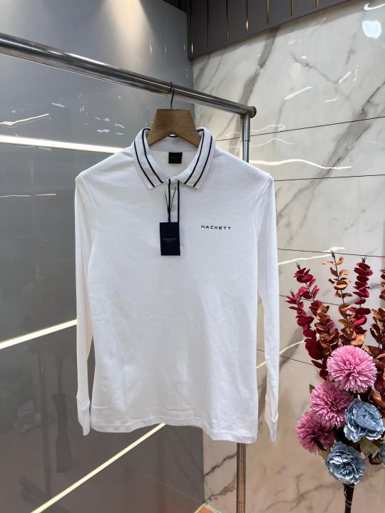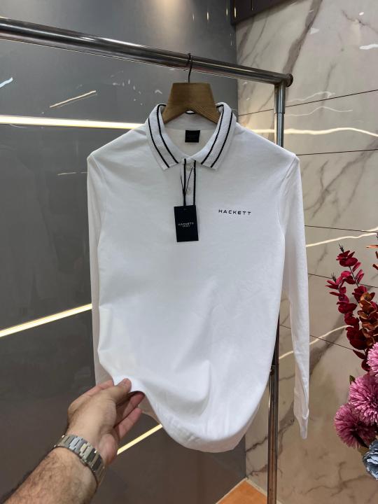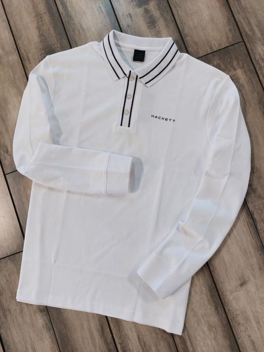Hacket White Premium Imported Compact Yarn 240 GSM Interlock Fabric Polo Full Sleeves Tshirt with Collar Design and Front Emboss logo 3222