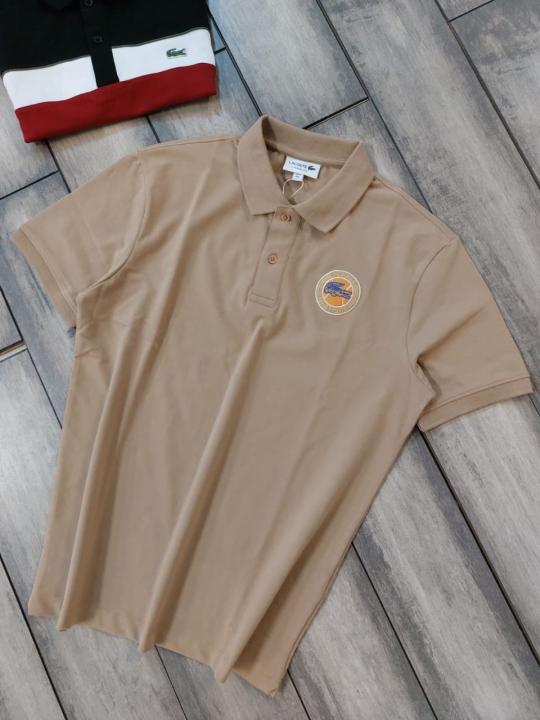 Lacost e Beige Premium Cotton Pique fabric Polo Tshirt with Embroidered Logo 3170