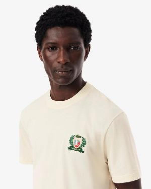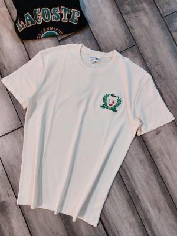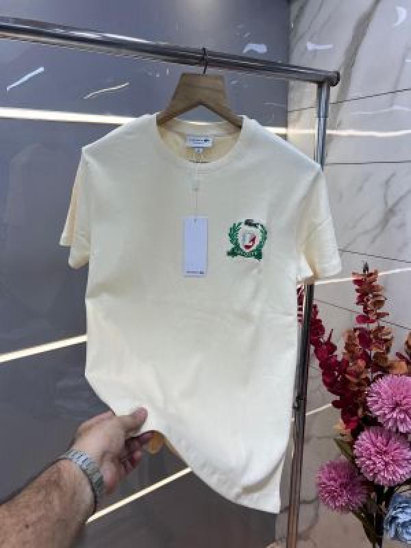 Lacost e Cream Premium Imported 240 GSM Interlock Lycra Fabric Round Neck with Front Printed Design Tshirt 3313