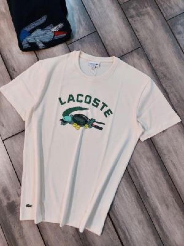 Lacost e Cream Premium Imported 240 GSM Interlock Lycra Fabric Round Neck with Front Printed Design Tshirt 3315