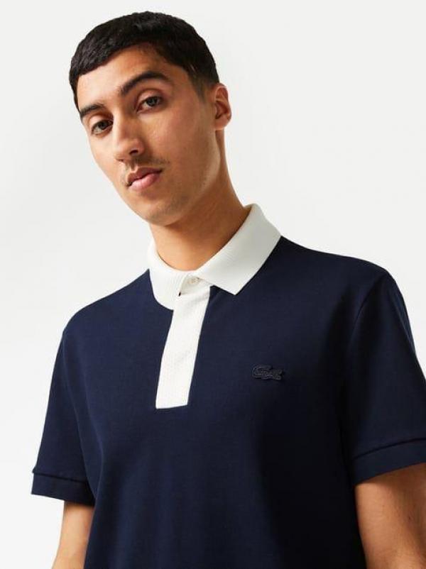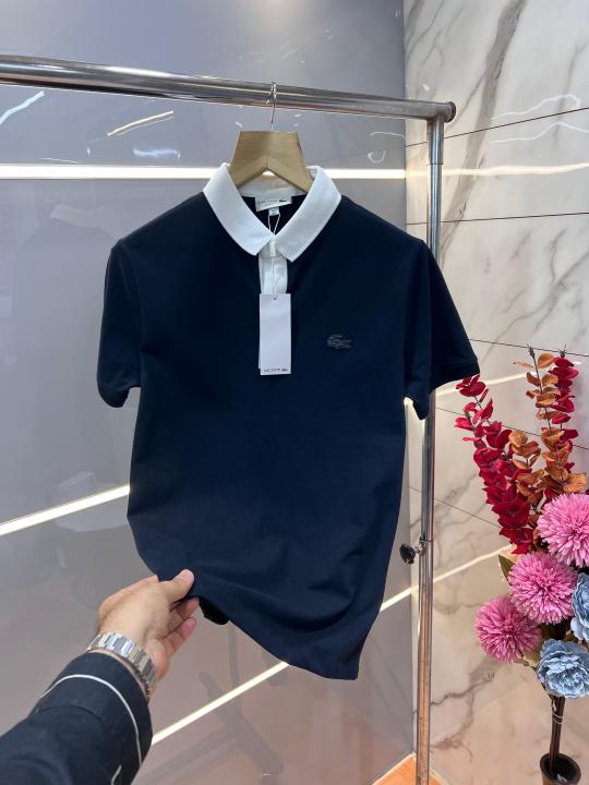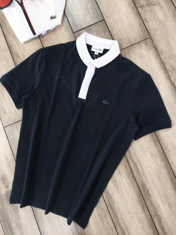 Lacost e Navy Premium Cotton Pique fabric Polo Tshirt with Collar Design and Embroidered Logo 3106