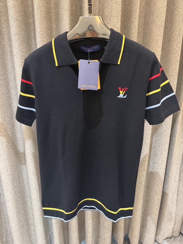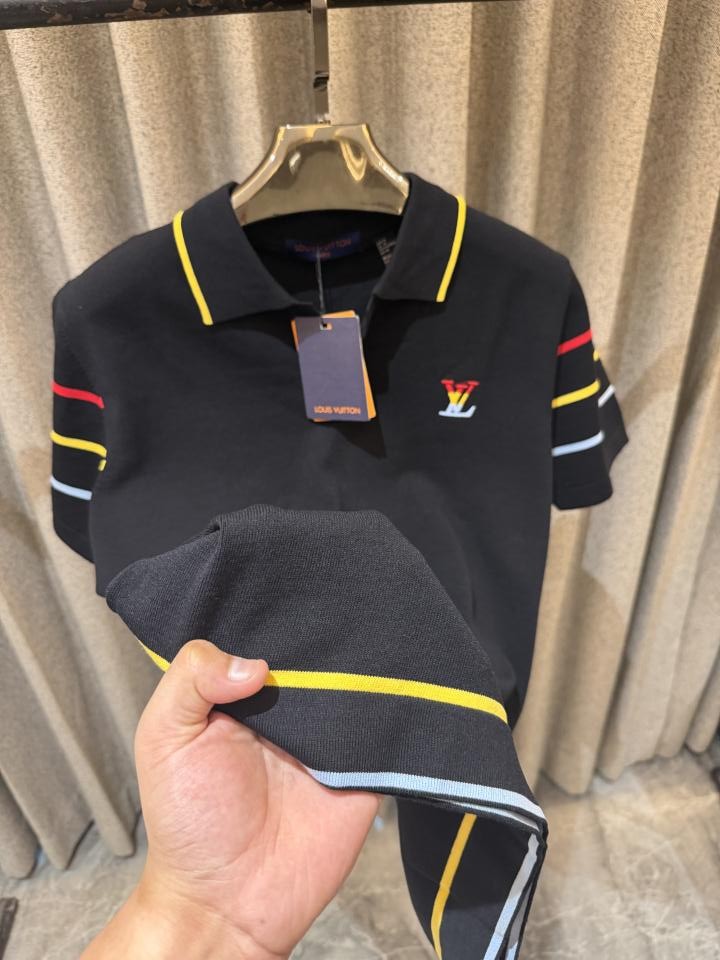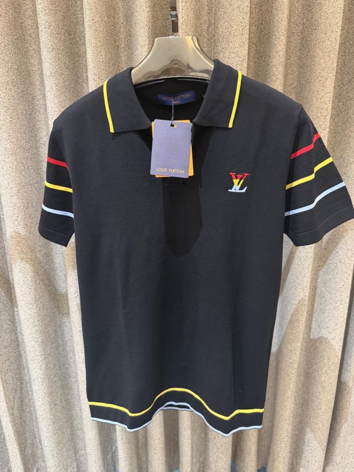 Loui s Vuitton Black Premium Polo Tshirt Knitted Lycra