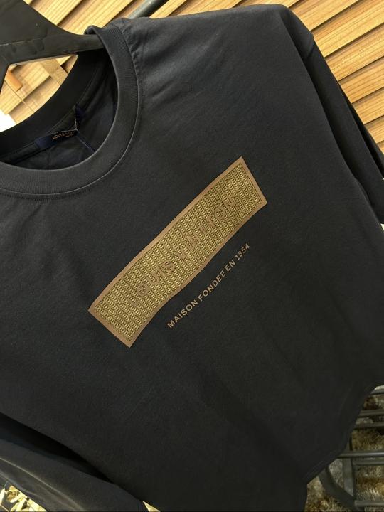 Loui_s Vuitton Turkey Imported Jute Embroidered Premium Drop Shoulder T-shirt Black (DN567)