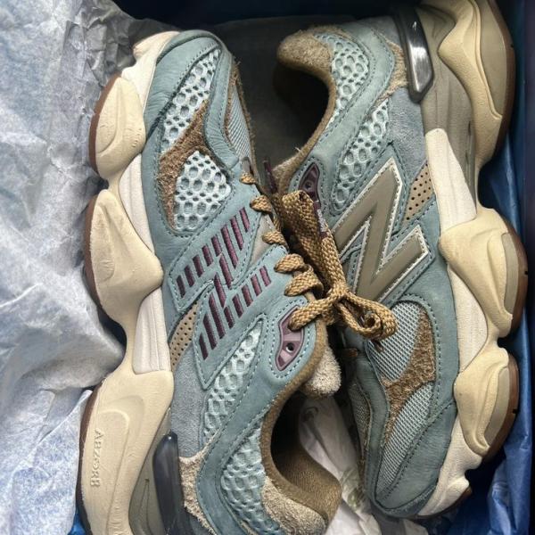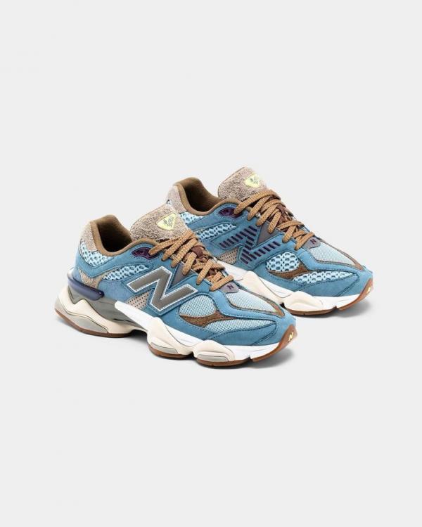 Taking cues from the 860v2, the 991, and classic 99X models, the lifestyle runner features a pastel shade of blue on an upper that combines overlays and varying types of mesh. Contrasting earth tones include brown suede detailing throughout the forefoot and hairy tan suede on the heel tab and tongue. The latter displays a bright yellow NB 9060 emblem, while a silver 'N" logo decorates the lateral quarter panel. Anchoring the sneaker is a dual-density midsole with ABZORB and SBS cushioning. A gum rubber outsole offers durable traction underfoot.