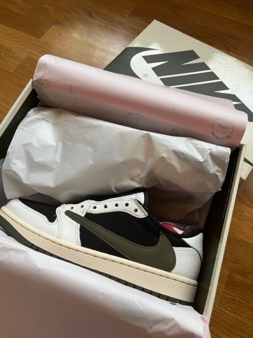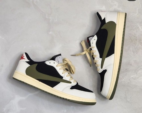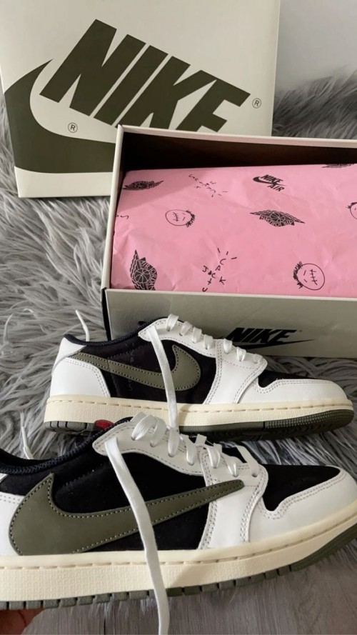 Nikee Air Jordan Retro 1 Low X Travis Scott OLIVE With Extra Laces And OG BOX SEMI UA. (673)