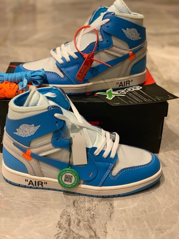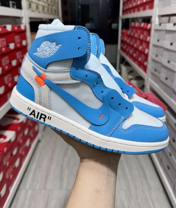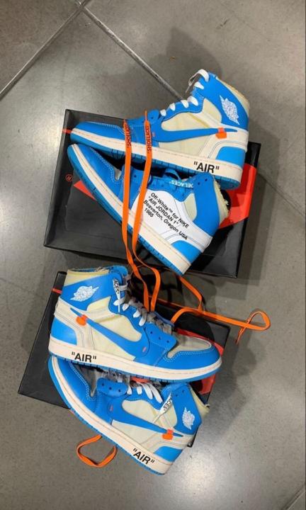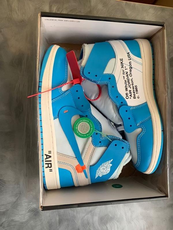 Inspired by Michael Jordan's alma mater, the Off-White x Air Jordan 1 Retro High OG 'UNC' carries a classic two-tone composition, filtered through Virgil Abloh's unique design prism. The process involves taking a white leather base with dark powder blue overlays and adding embellishments that convey an expressive, handmade quality. They include detached Wings, a floating Swoosh, and lines of text on the medial-side quarter panel delineating the taxonomy of the shoe