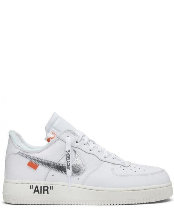 This Air Force 1 designed by Virgil Abloh dropped at ComplexCon 2017 in celebration of the silhouette's 35th anniversary. It features a white leather upper with a metallic silver Swoosh and an orange tag. It also comes with a chunky foam tongue and signature "AIR" branding on the midsole. The Nike Air Force 1 AF100 pack also included an Air Force 1 Low by Travis Scott, a Lunar Force 1 by Acronym, an Air Force 1 High by Don C, and an Air Force 1 Low by Roc-A-Fella. The pack received a wider release in December 2017.
