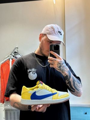 Travis Scott x Air Jordan 1 Retro Low OG SP Canary sneaker.