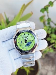 CASIO GSHOCK B2100 METAL SILVER GREEN DIAL 308
