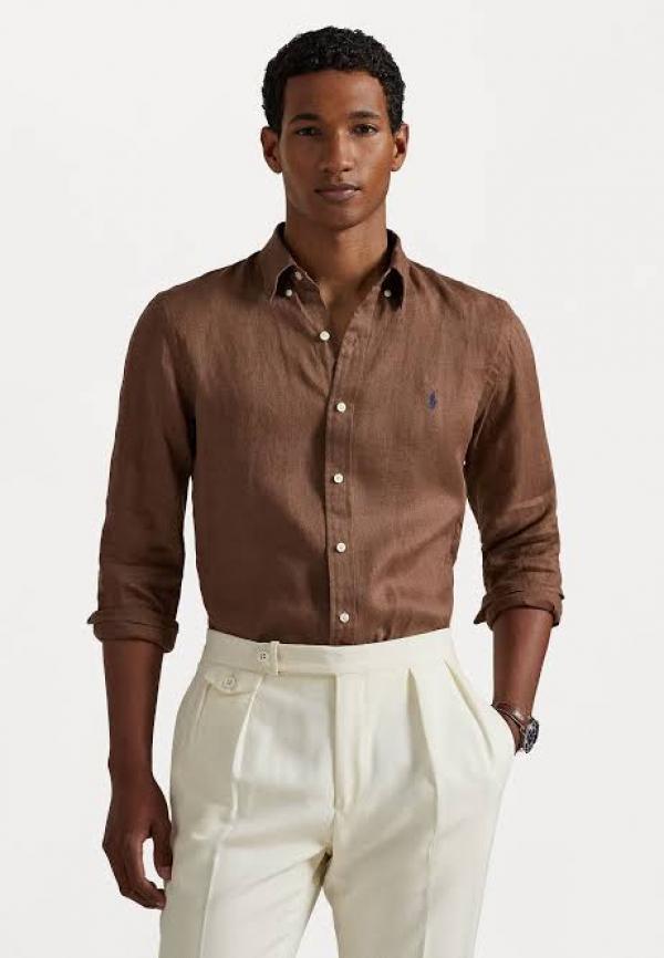 Ralp h Lauren Brown Pure Linen Shirt