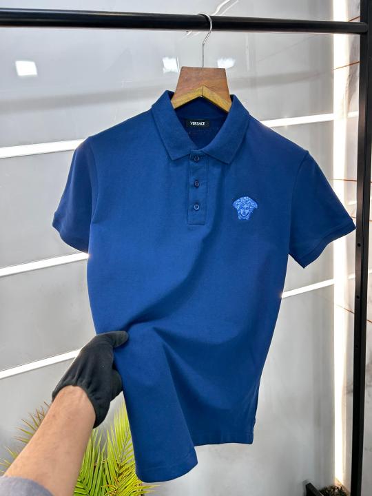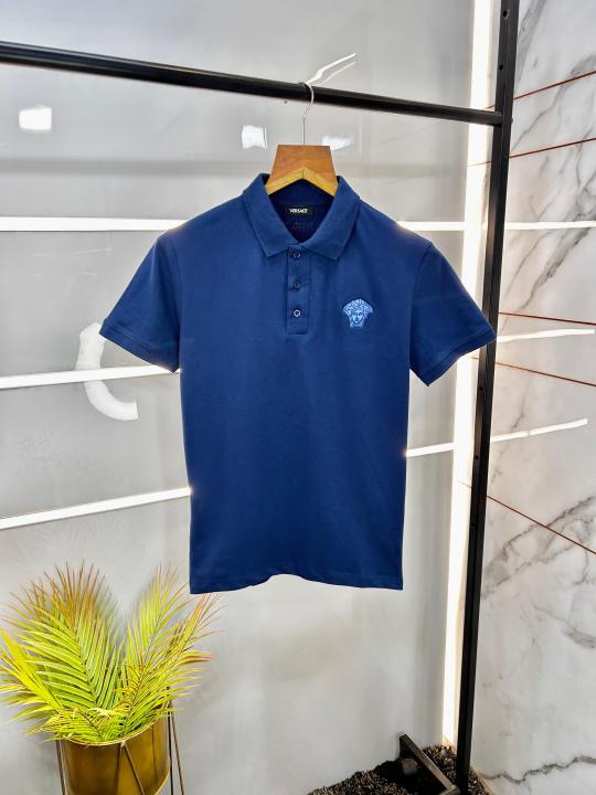 Sale Versace Logo Premium Polo Collar Neck Blue T-shirt 067