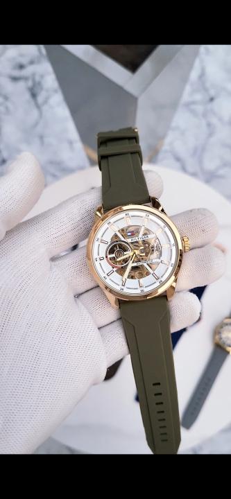 Tommy_Hilfiger Automatic Silicon Belt Green Gold White 145