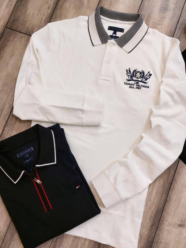Tommy_Hilfiger White Polo Neck Full Sleeves Premium Collar T-shirt F2787-WH