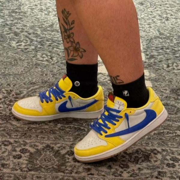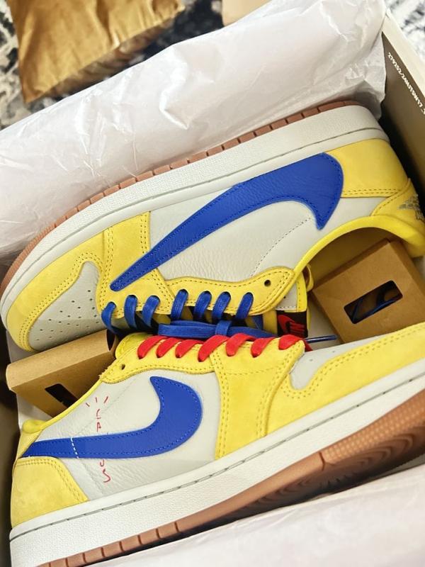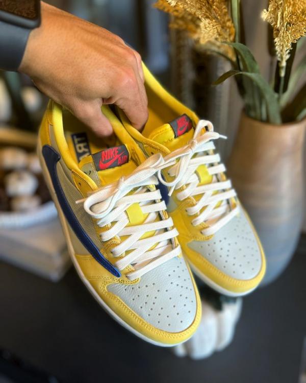Travis Scott x Air Jordan 1 Retro Low OG SP Canary sneaker.