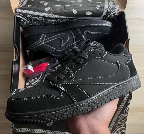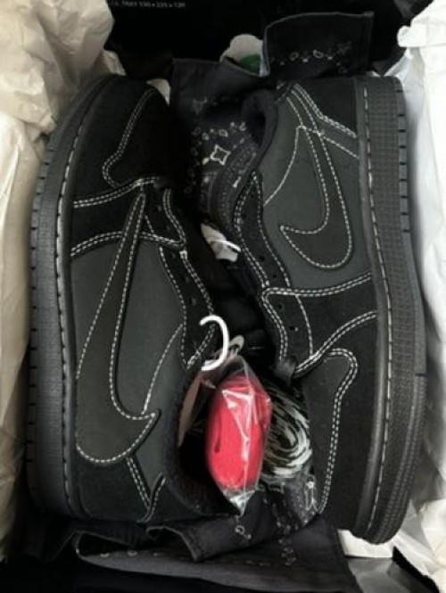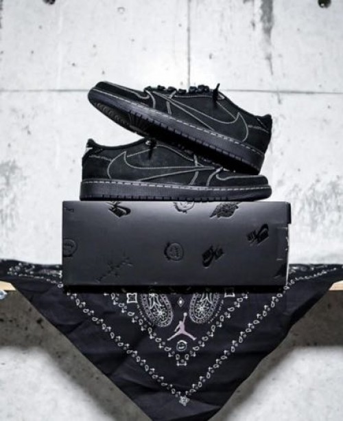 Travis Scott x Jordan 1 Low Black Phantom With Genuine Semi UA With 3 Laces OG Black Open Box Bandana Cloth No Cover