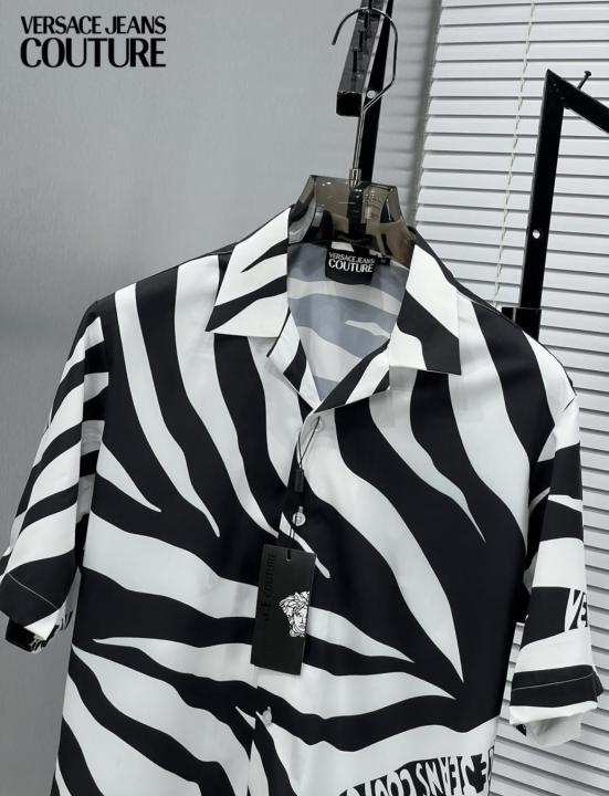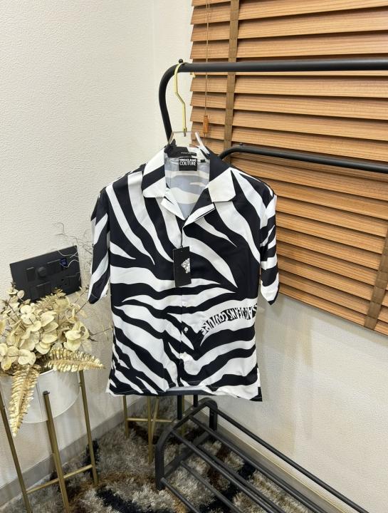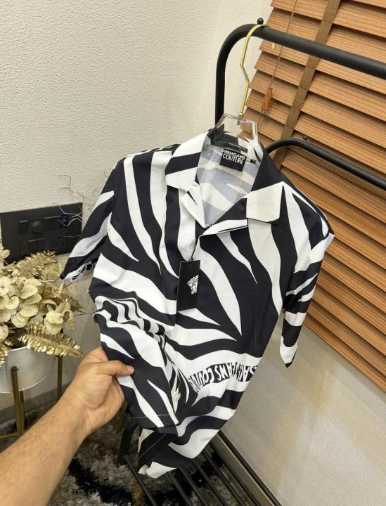 Versac_e Jeans Couture White Zebra Patta Printed Imported Very Premium Half Shirt (DN 521)