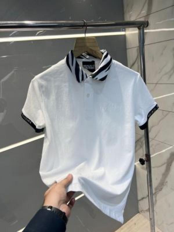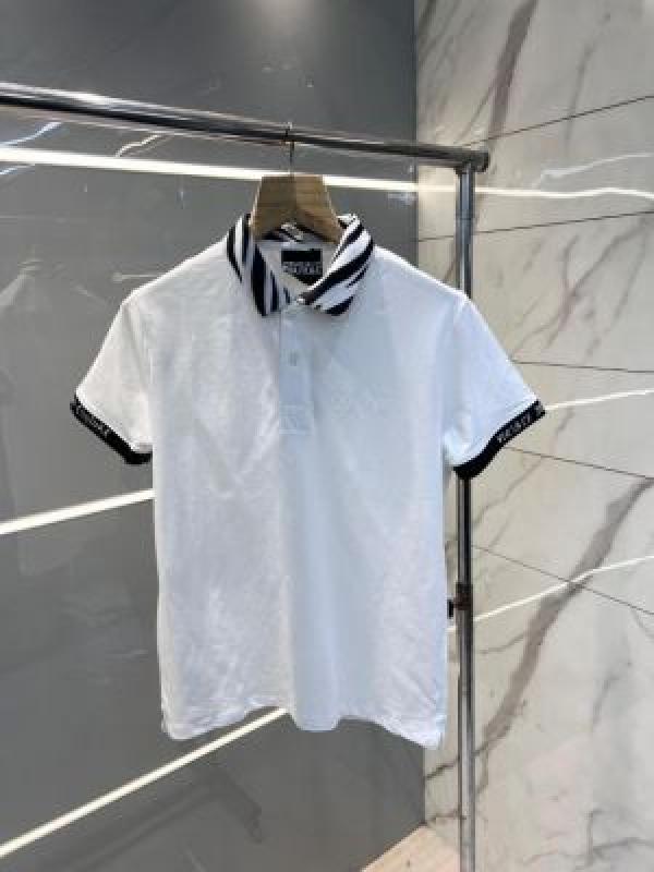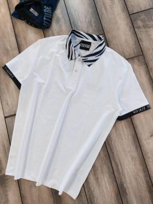 Versac e White Premium Cotton Lycra Pique fabric Polo Tshirt with Collar Design and Embroidered Logo 2889