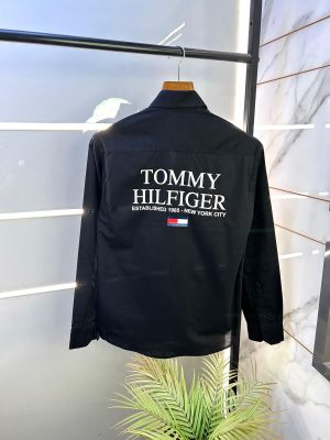 Tommy_Hilfiger Back Printed Black Oxford Lycra Premium Shirts F2577-BL