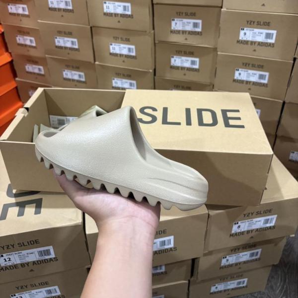 The adidas Yeezy Slide 'Pure' highlights a one-note beige finish throughout the exterior of the slip-on. Lightweight and durable, injected EVA foam makes up the composition of the one-piece build. The minimalist design is marked with an embossed adidas logo on the soft top layer of the footbed, good for immediate step-in comfort. Underfoot, the outsole is configured with deep flex grooves for a smooth ride and optimal grip