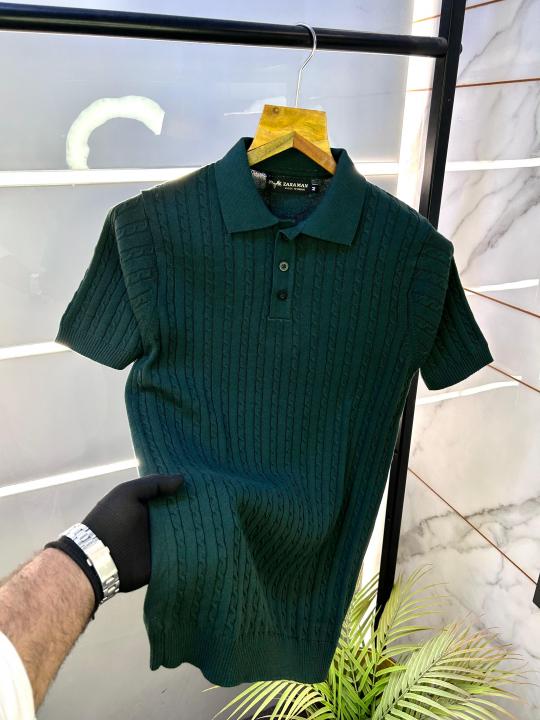 Zar a Knitted Dark Green Imported Super Premium Collar T-shirt F2829-DGR